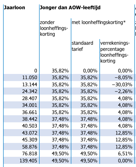 Als je vorig jaar een jaarsalaris had van € 43.000 dan moet je 41,56% betalen. Als je door salarisverhoging of eenmalige bonus in 2025 € 44.000 verdienen dan val je in de schijf dat je 50,33% belasting moet betalen over je vakantiegeld.